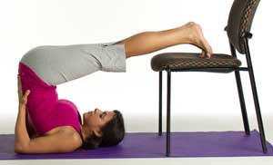 Another helpful tip is to not fully enter the inverted poses. You may also want to start in a half inverted variation by setting the pelvis so that it remains slightly away from the vertical line of the shoulders, thus reducing the weight on the shoulder and lower neck region. This often requires additional support from the hands and arms, though. You can also modify Plow Pose by placing the feet on an elevated support like a set of blocks or a chair. These supports eliminate the benefits of the lock or bandha, but can alleviate the pressure and excess stretch going into the posterior neck tissues. As with all Yoga poses, enter inverted asanas with full awareness observing how the neck and the rest of the body responds. Also listen to the echoes remaining as we often feel later on if we have gone to far into the Yoga posture.