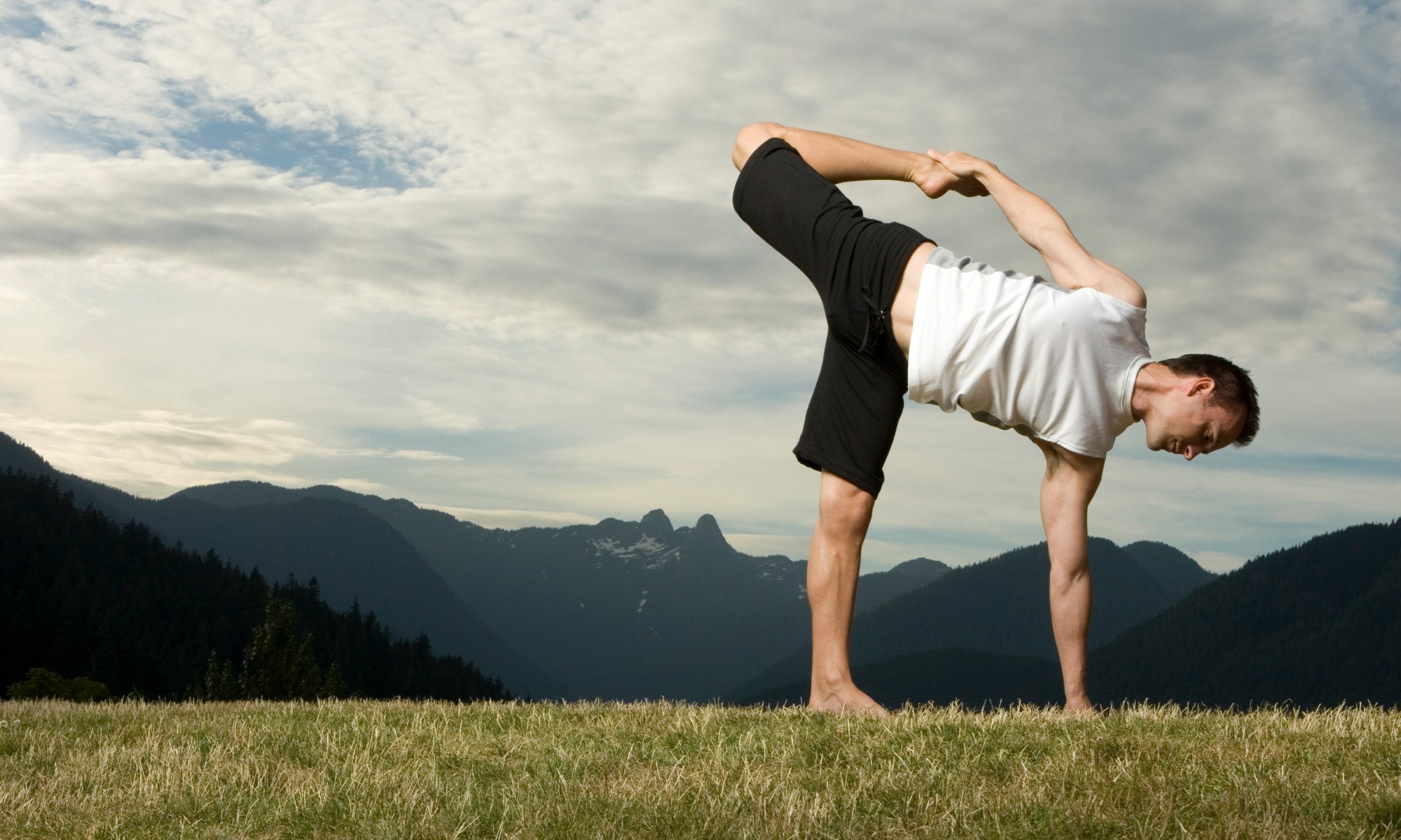 This is commonly seen in simple standing quadriceps balancing stretches (standing on one foot and holding the opposite ankle to stretch the thigh). As we line up the knees and thighs parallel to each other, the rectus femoris tension acts on the pelvis. Without stabilizing the pelvis, the pelvis drops forward and placing compression into the lower back.